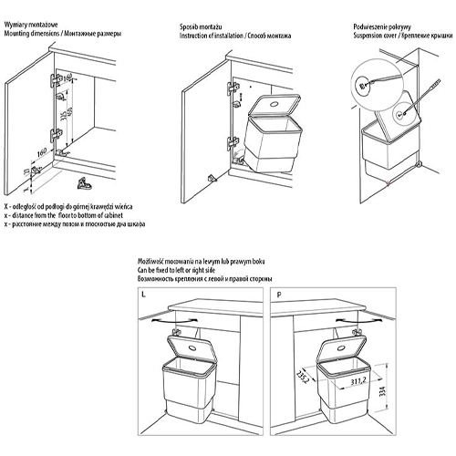 Кош за вграждане СЕЗАМ 450мм- 16 л.